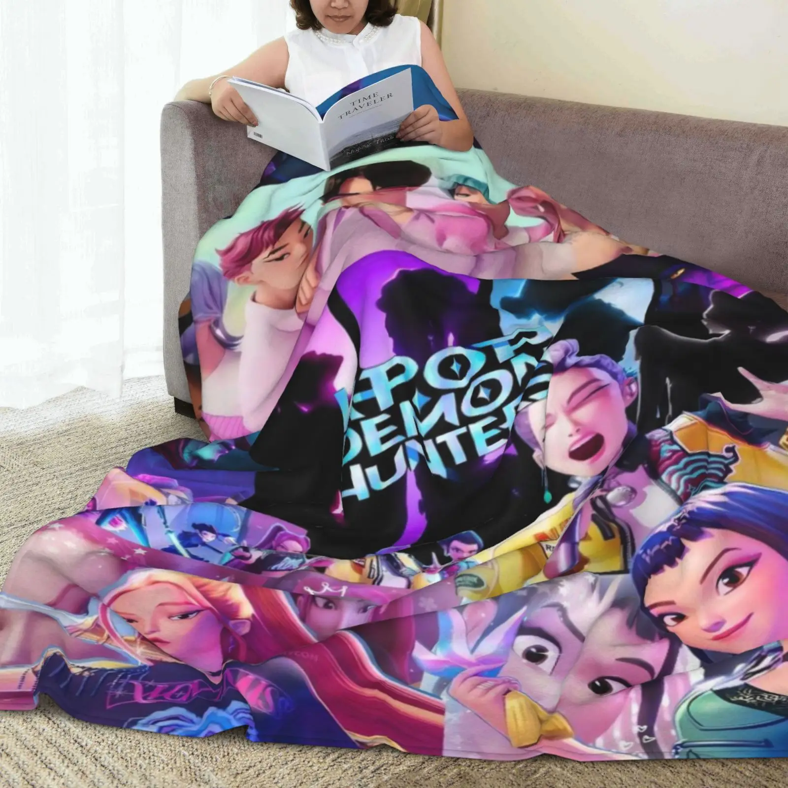 Embrace the warmth and style of your favorite KPop and Demon Hunter anime with the Funny Sajaboys & Huntrix Girls cozy super soft flannel blanket, perfect for any fan looking to enhance their living room decor!