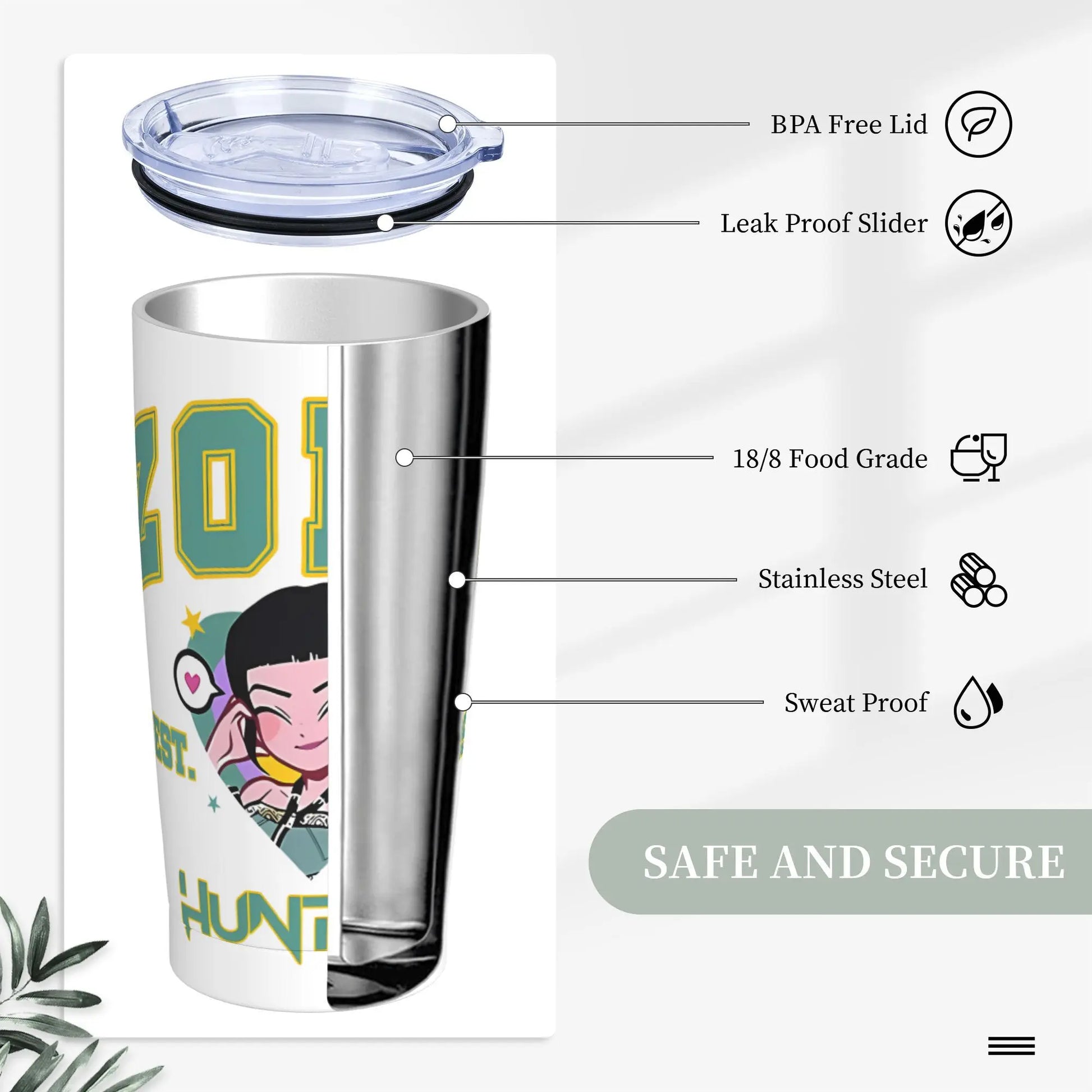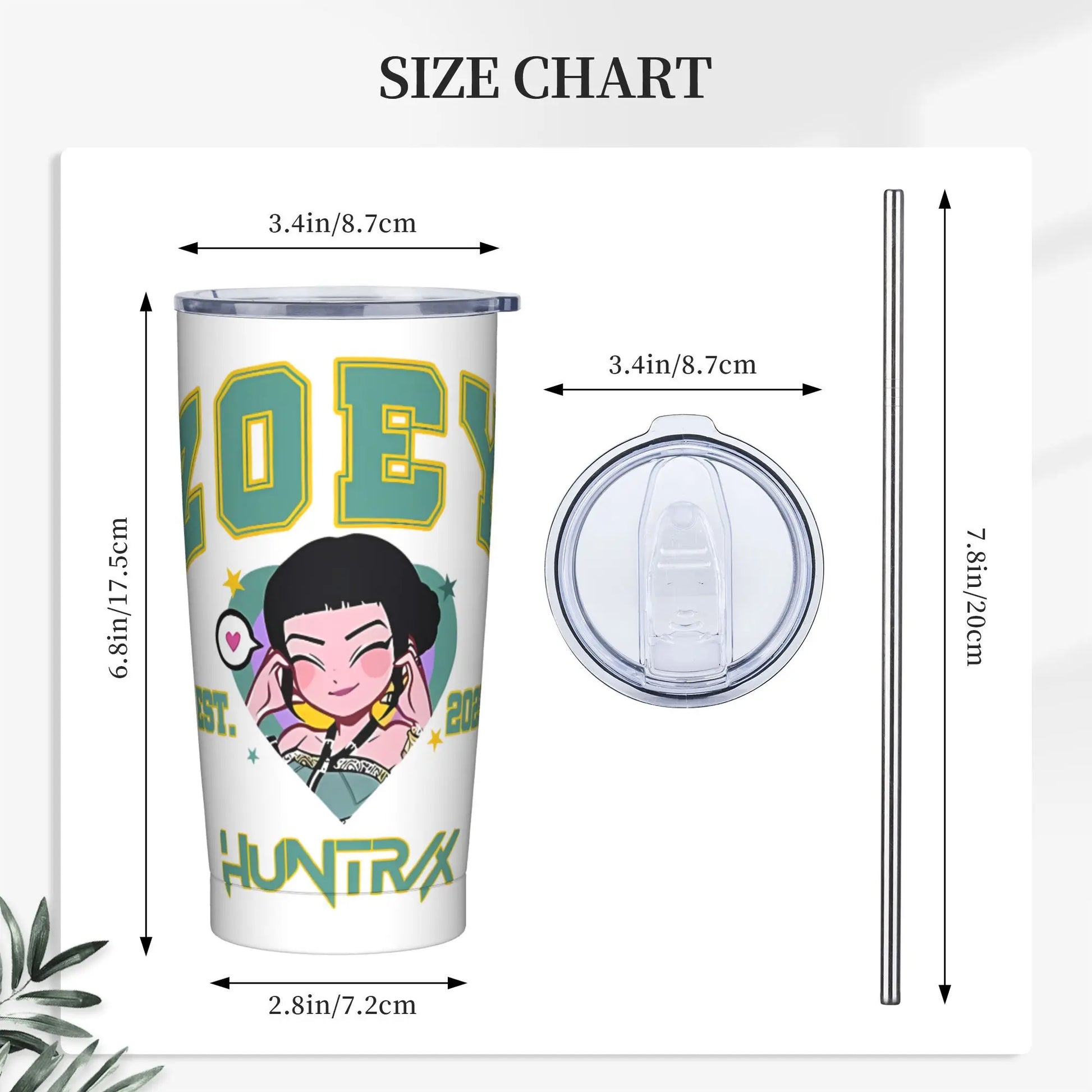 Keeps beverages hot or cold for hours – ideal for coffee, tea, or iced drinks20oz capacity for ample hydration throughout the daySleek design featuring Huntrix Zoey with vibrant, fade-resistant artworkDurable and eco-friendly construction suitable for daily usePerfect for school, work, travel, or home – fits most cup holdersLeak-proof lid with a secure seal to prevent spillsIdeal gift for KPop fans, collectors, or anyone who loves unique drinkware